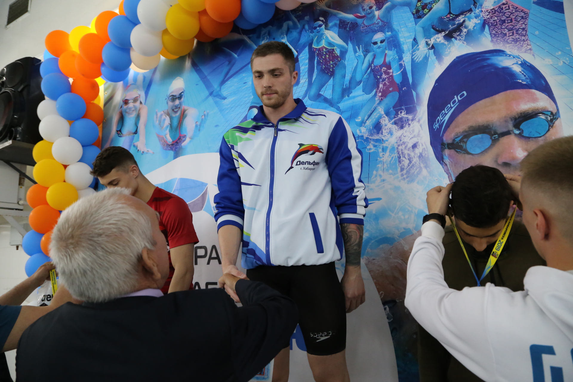 Мэр города нашел время и в третий день соревнований наградил всех спортсменов лично, а это порядка 20 награждений. Участники были счастливы. Так же градоначальник поздравил с днем рождения одного из наших лидеров – Павла Савельева. Я думаю, ребята заполнят эти моменты надолго, это очень почетно, - рассказал вице-президент федерации плавания Хабаровского края, директор СШ «Дельфин».