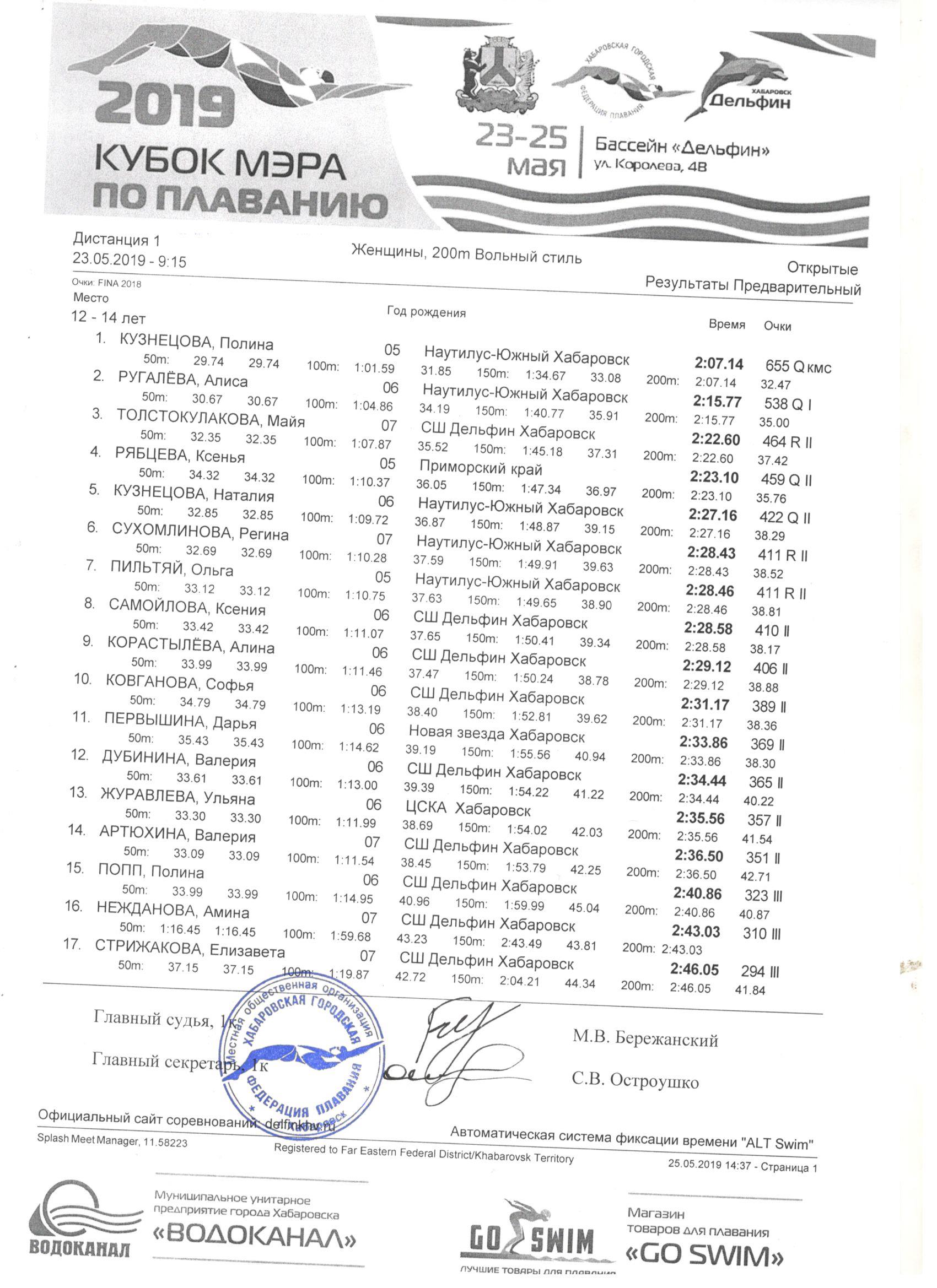 Первый Кубок мэра Хабаровска по плаванию состоялся в бассейне «Дельфин». Помимо хозяев в турнире выступило более 200 спортсменов из Новосибирска, Москвы, Южно-Сахалинска, Благовещенска, Комсомольск-на-Амуре, Советской Гавани, Амурска, Уссурийска, Владивостока, Находки и Биробиджана. Хабаровские пловцы превзошли все ожидаемые результаты. Лидеры выступили на уровне лучших спортсменов страны в своей возрастной группе.