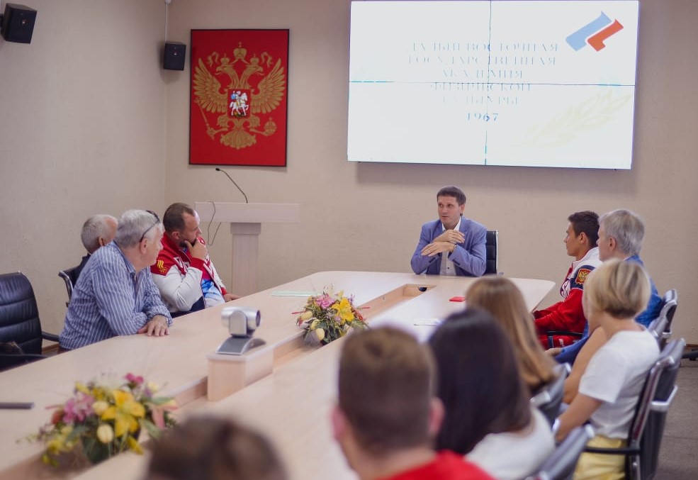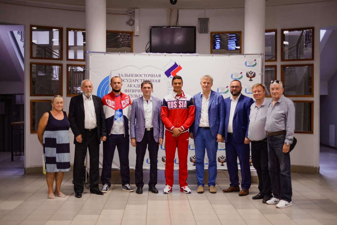 На следующий день именитые гости поучаствовали в торжественном открытии Кубка города по плаванию. После открытия соревнований состоялась встреча с мэром города Хабаровска Кравчуком Сергеем Анатольевичем и спортивным руководством города.