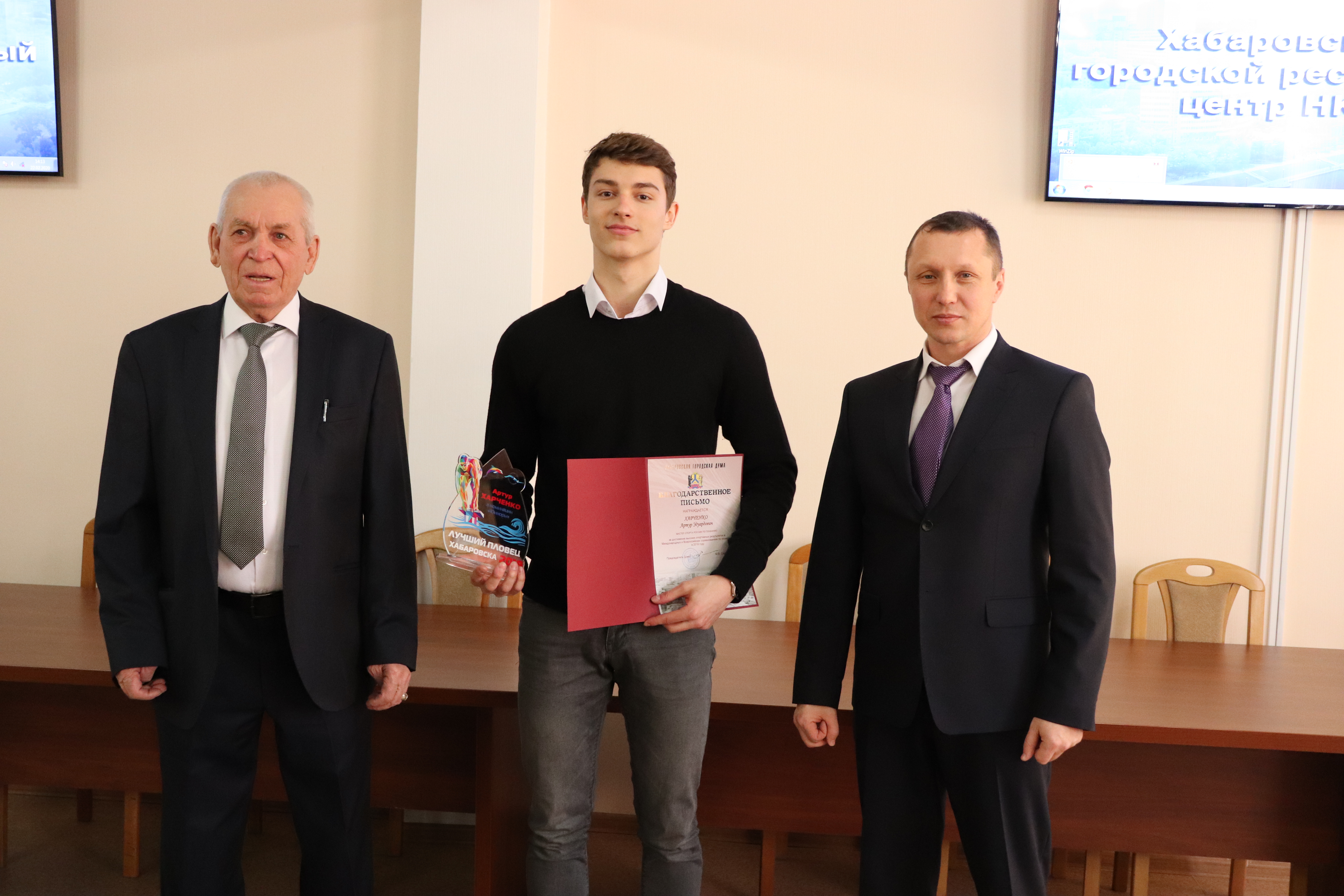 Хабаровские пловцы за последний год совершили настоящий прорыв в результатах. И впервые, сразу по возвращению с чемпионата и первенства ДФО из Владивостока, сильнейших наградили в Хабаровской городской думе благодарственными письмами. Награды вручали Председатель Хабаровской городской Думы Михаил Викторович Сидоров и президент Хабаровской городской федерации плавания Шардаков Валерий Иванович.
