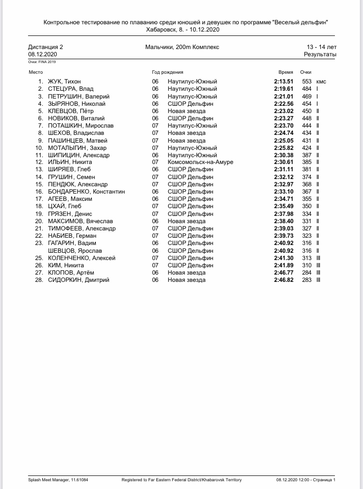 Итоги первенства Хабаровского края "Весёлый дельфин", 03-05.04.2024
