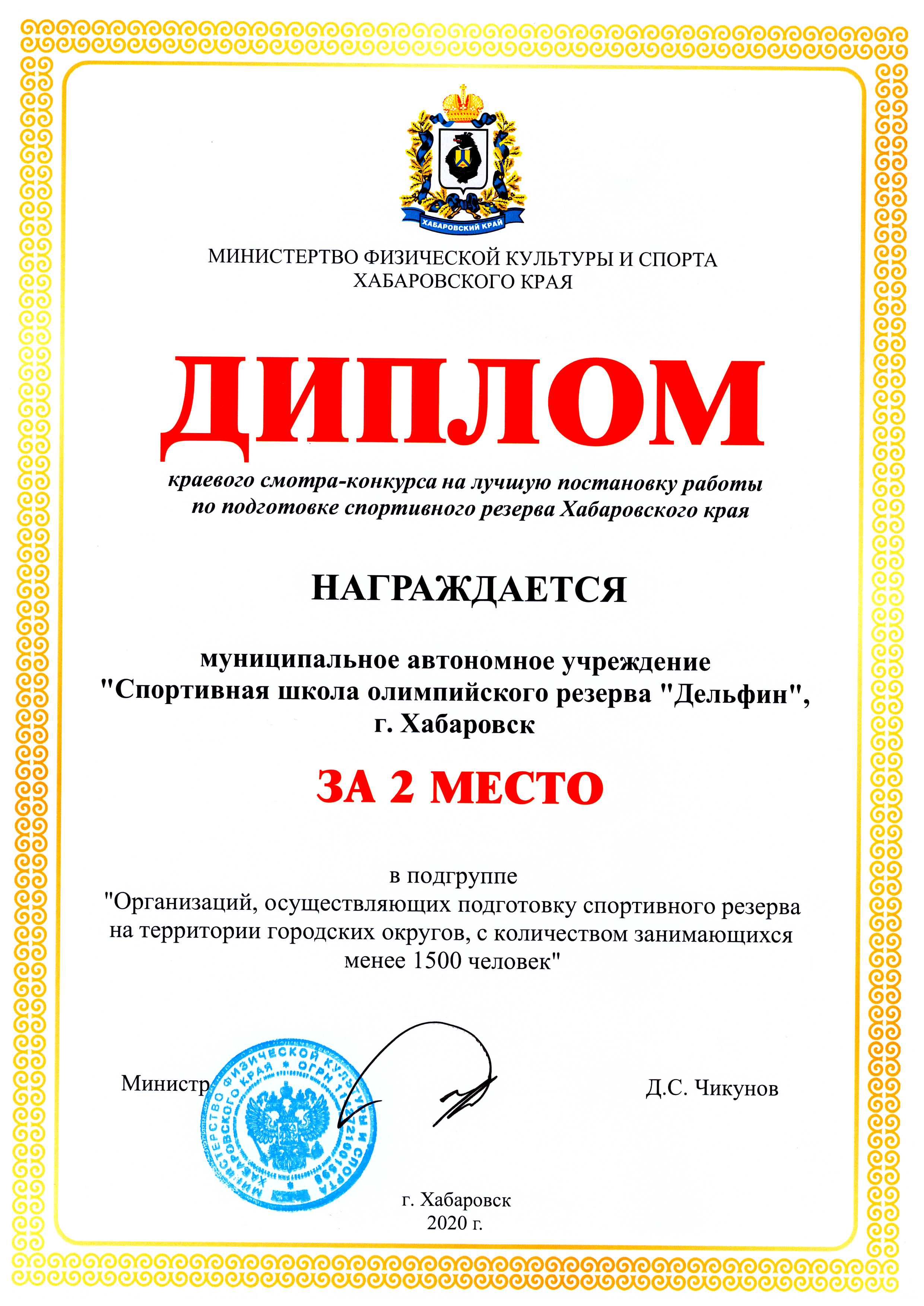 СШОР «Дельфин» занял второе место в краевом смотре-конкурсе по итогу 2020 года.