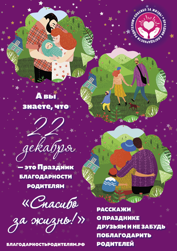 22 декабря впервые в России будет отмечаться праздник благодарности родителям «Спасибо за жизнь».
