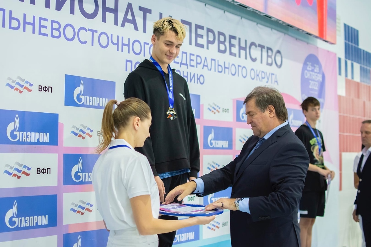 Впервые чемпионат ДФО посетил президент Всероссийской федерации плавания, четырехкратный Олимпийских чемпион - Владимир Сальников, который рассматривает возможность провести этап Кубка России по плаванию в островном регионе уже в следующем году.